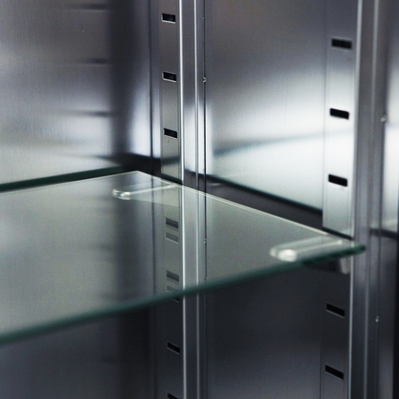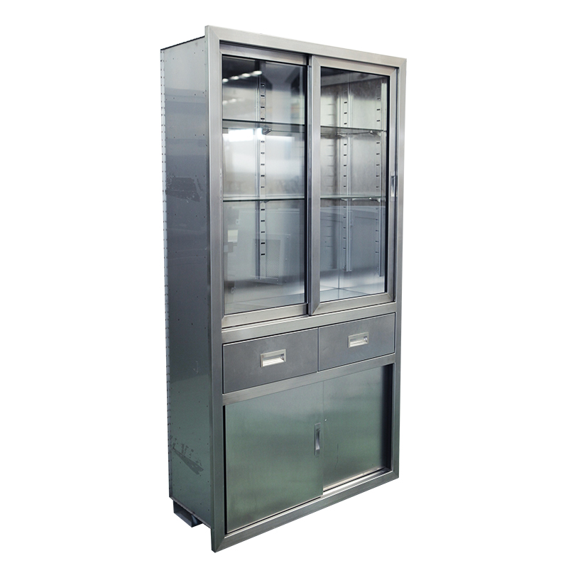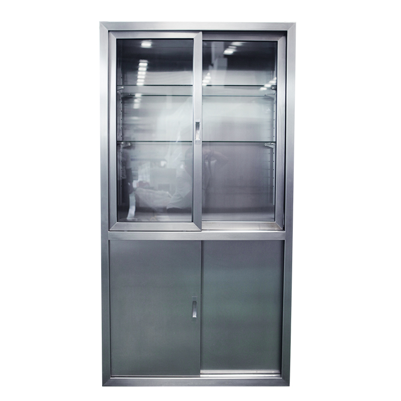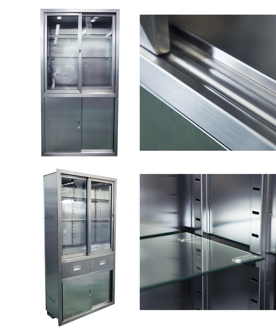 廠,實驗室等各種小型器械的保管和存放,采用sus304不銹鋼板制作,上層為玻璃門,柜體內(nèi)部為圓弧造型,無死角易于清潔。